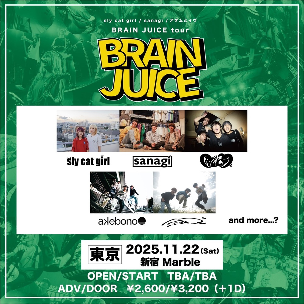 「BRAIN JUICE tour」 SCHEDULE 2025/11/22(土) 新宿Marble OPEN/START TBA/TBA ADV/DOOR ¥2,600/¥3,200 (+1D) w/ sly cat girl sanagi アダムとイヴ ミニマムズ お取り置きはこちらから🎫 URLをコピーする 報告する